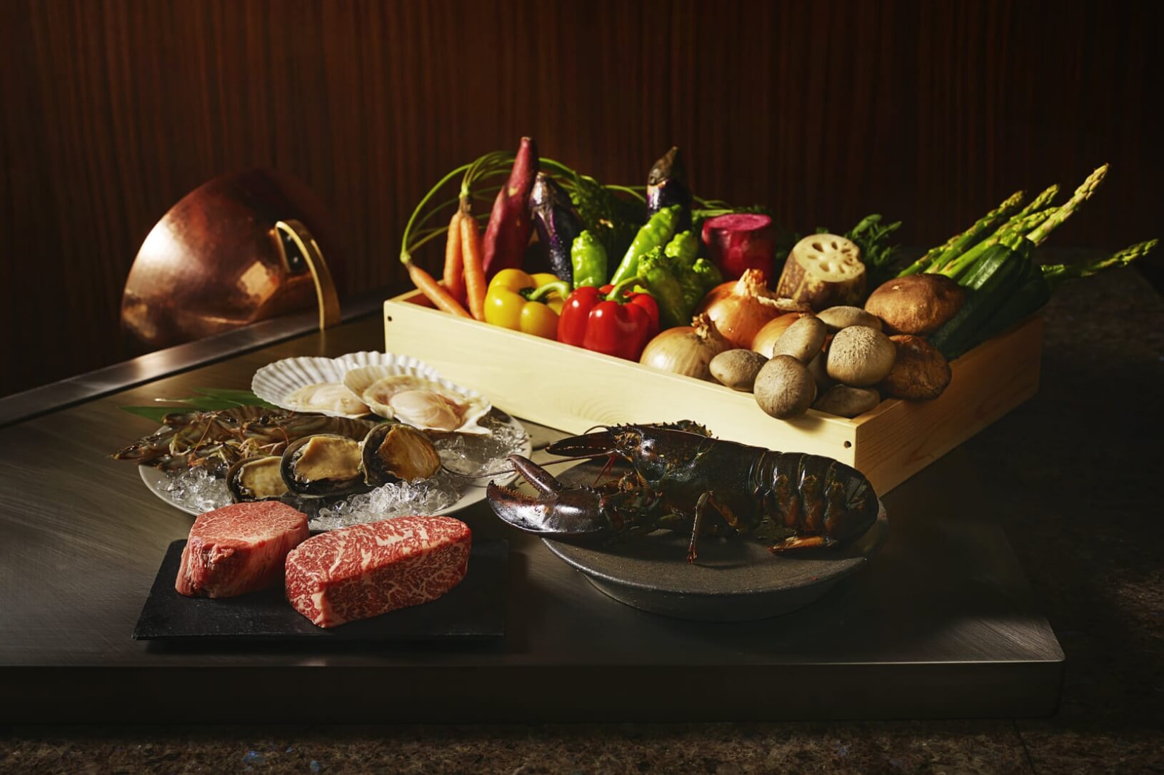 神戸の港を眺めながら専属の焼き手が目の前で仕上げる極上のお料理や和牛をご堪能下さい。